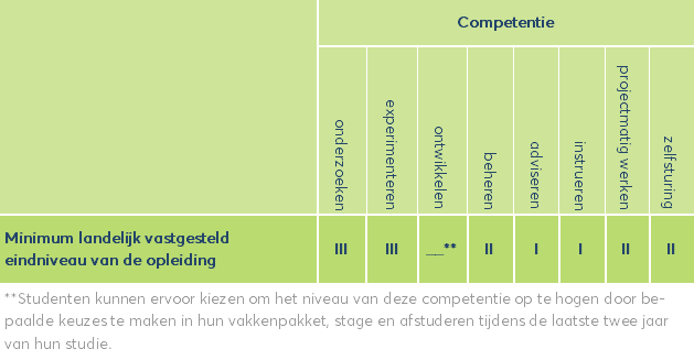 De Body of Knowledge & Skills geeft de gemeenschappelijke basis van de opleidingen bij de verschillende hogescholen weer. Studenten leren deze kennis en vaardigheden in de eerste twee jaar van hun opleiding. In de laatste twee jaar specialiseren zij zich.